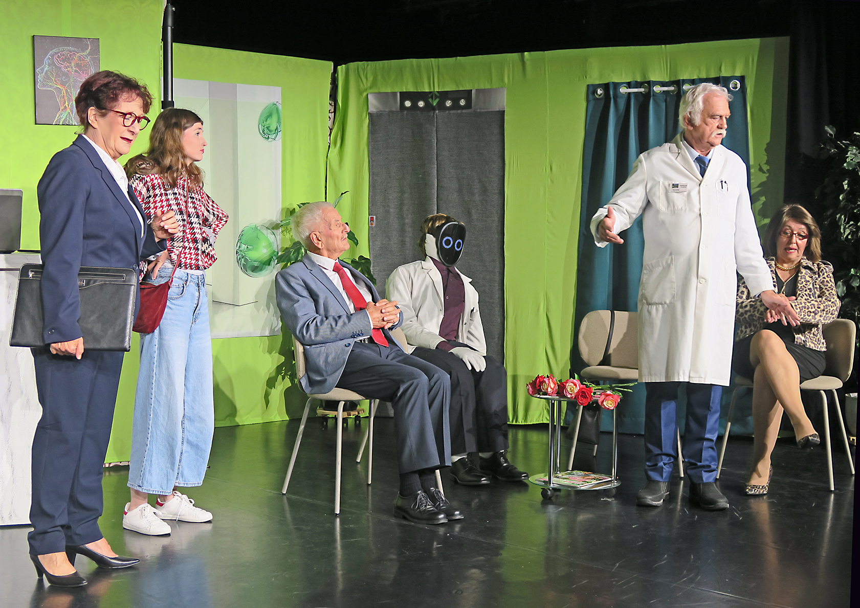 Genau in dieser absurden Ausgangslage entfaltet die Aufführung ihren Tiefgang. Die Inszenierung nutzt die Geschichte, um subtil die Frage zu stellen, was in unserer Gesellschaft eigentlich als «normal» gilt. Die vermeintlich «vernünftigen» Charaktere, selbst der Psychiater Prof. Dr. Emil Burgholz (Freddy Koller) und Oberschwester Rosanna Keller (Ruth Schärer), geraten durch Eduards unerschütterliche Gelassenheit und die omnipräsente Unsichtbarkeit Harveys ins Wanken. Besonders hervorzuheben ist die scharfsinnige Auseinandersetzung mit der Diagnostik: die Absurdität, dass ein «Roboter-Arzt» über das Schicksal der Menschen entscheiden soll, verleiht der klassischen Komödie einen zeitgemässen, fast satirischen Unterton.