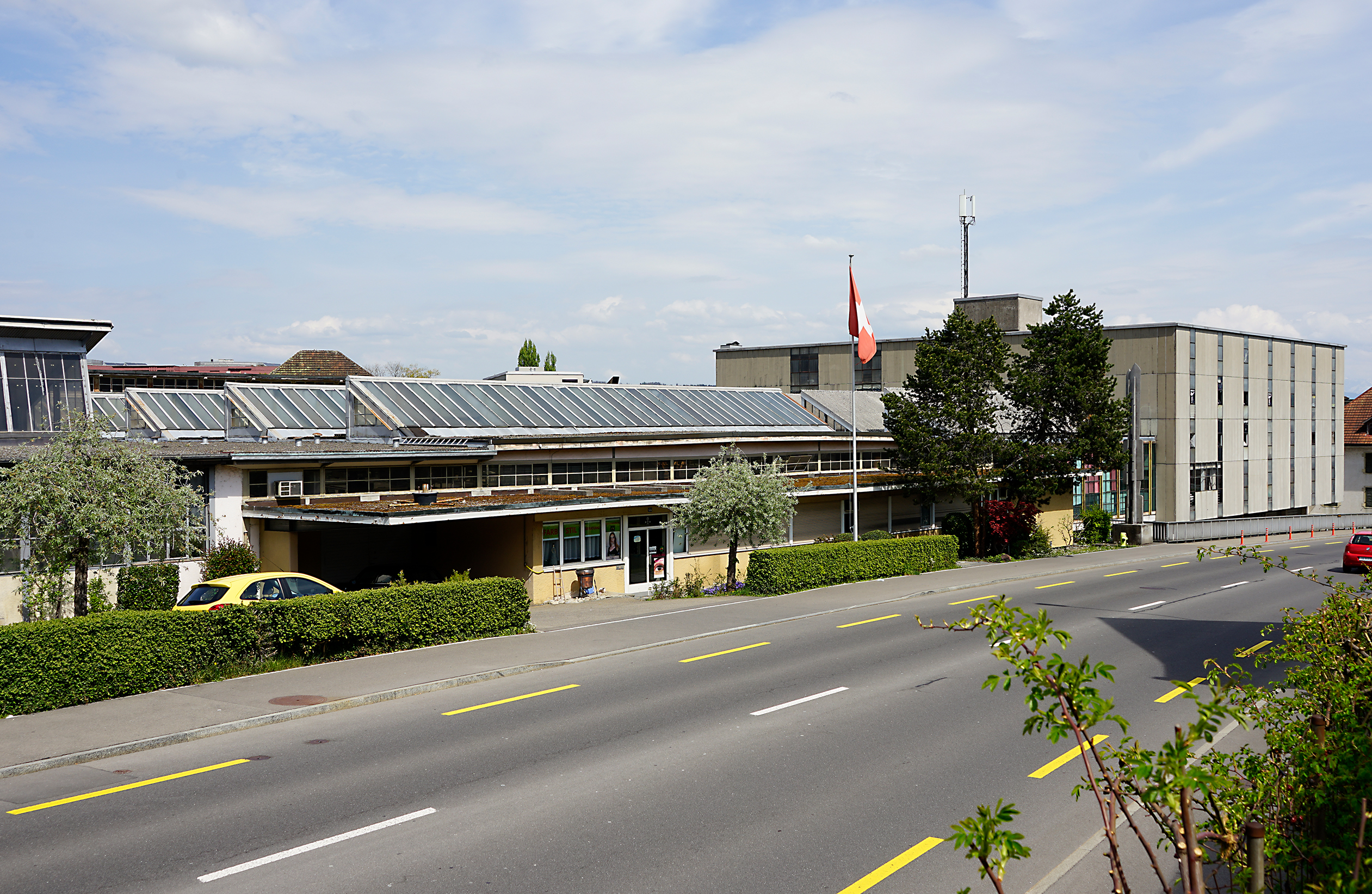 Dass der 1935 bezogene Gebäudekomplex an der Zugerstrasse nicht sofort als Industriebau wahrgenommen wird, dürfte auch an dessen Architekt liegen: Hans Fischli war ausserdem Maler, Zeichner und Bildhauer, studierte am Bauhaus in Dessau und entwarf auch die Arbeitersiedlung im Gwad, die heute denkmalgeschützt ist. Auch die Aluminium-Stele aus dem Jahr 1962 von François Stahly, des damals bedeutendsten Bildhauers Frankreichs, zeigt, dass an diesem Ort Besonderes steht und entsteht.