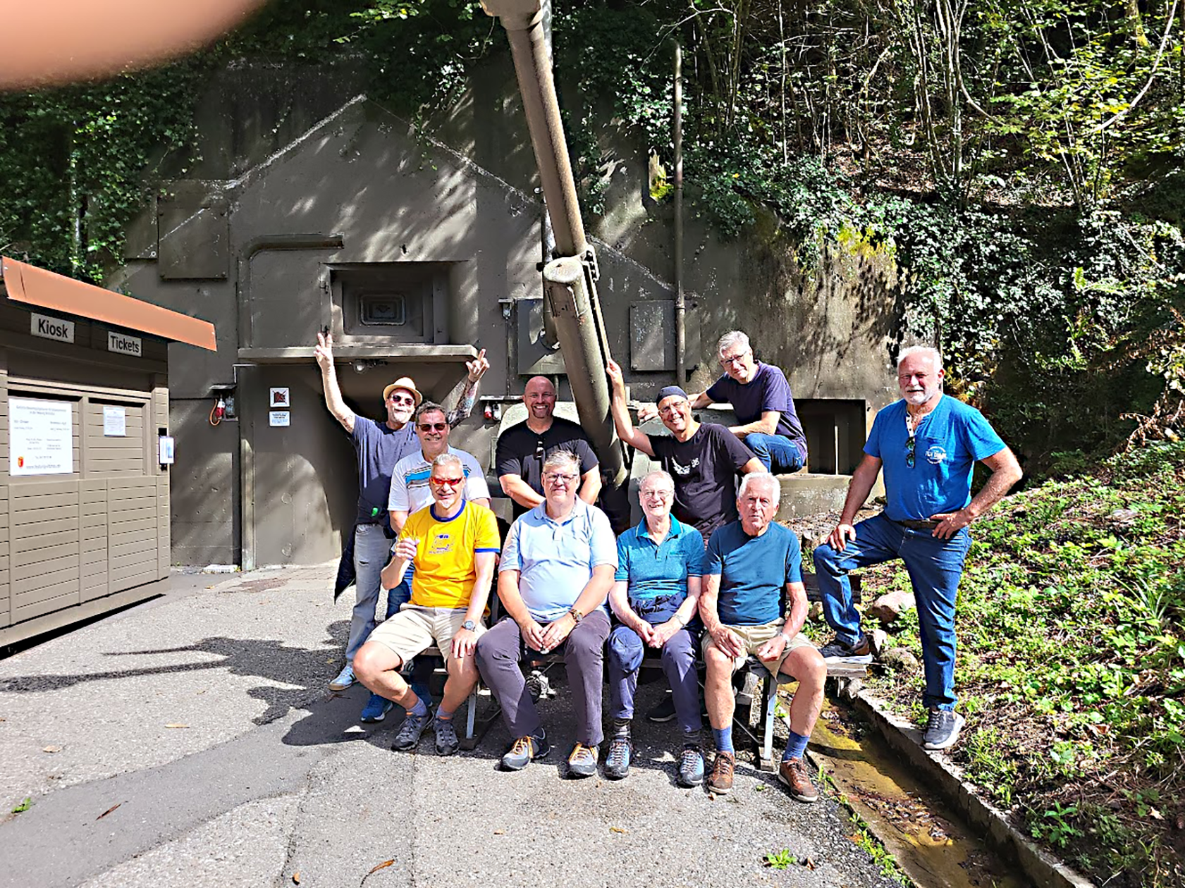 Am zweiten Tag brachte ein Schiff die Gruppe nach Vitznau, wo der Abmarsch zur Festung begann. 30 Minuten steil bergauf bis zum Eingang hatten es in sich. Das schöne alte Rigibähnli, welches mit Dampf angetrieben wird, fuhr an uns vorbei. Auch eine nicht alltägliche Sehenswürdigkeit! Jedoch hielt das Wetter, was es versprach und es war für den Aufstieg nicht zu warm. Am Eingang angekommen, musste zuerst wieder gestärkt werden.Nach einer fachkundigen Führung erwartete uns zum Mittag ein Raclette in der Festung, und danach kam der zweite Teil der Führung. Man staunte, was sich die Schweizer beim Bau dieser Festung alles einfallen liessen. Eines sei nebenbei noch bemerkt: Es kann auch in der Festung geheiratet werden, und dem Hochzeitspaar steht dann für die Hochzeitsnacht das Zimmer des Kommandanten der Festung zur Verfügung.