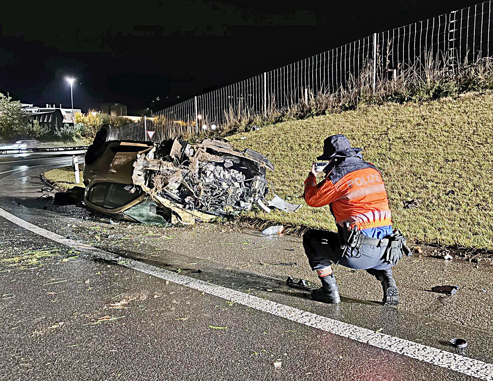 Kurz vor 23.45 Uhr fuhr der Lenker auf der A3 in Richtung Zürich. Auf Höhe der Ausfahrt Wädenswil geriet sein Fahrzeug aus bislang ungeklärten Gründen über den rechten Fahrbahnrand hinaus und prallte auf ein in der Kurve platziertes New-Jersey-Element. In der Folge hob der Wagen ab, flog mehrere Meter durch die Luft und überschlug sich nach dem Aufprall am Boden mehrfach. Das Auto kam schliesslich auf dem Dach liegend am Rand der in Richtung Zürich führenden Einfahrt zum Stillstand.