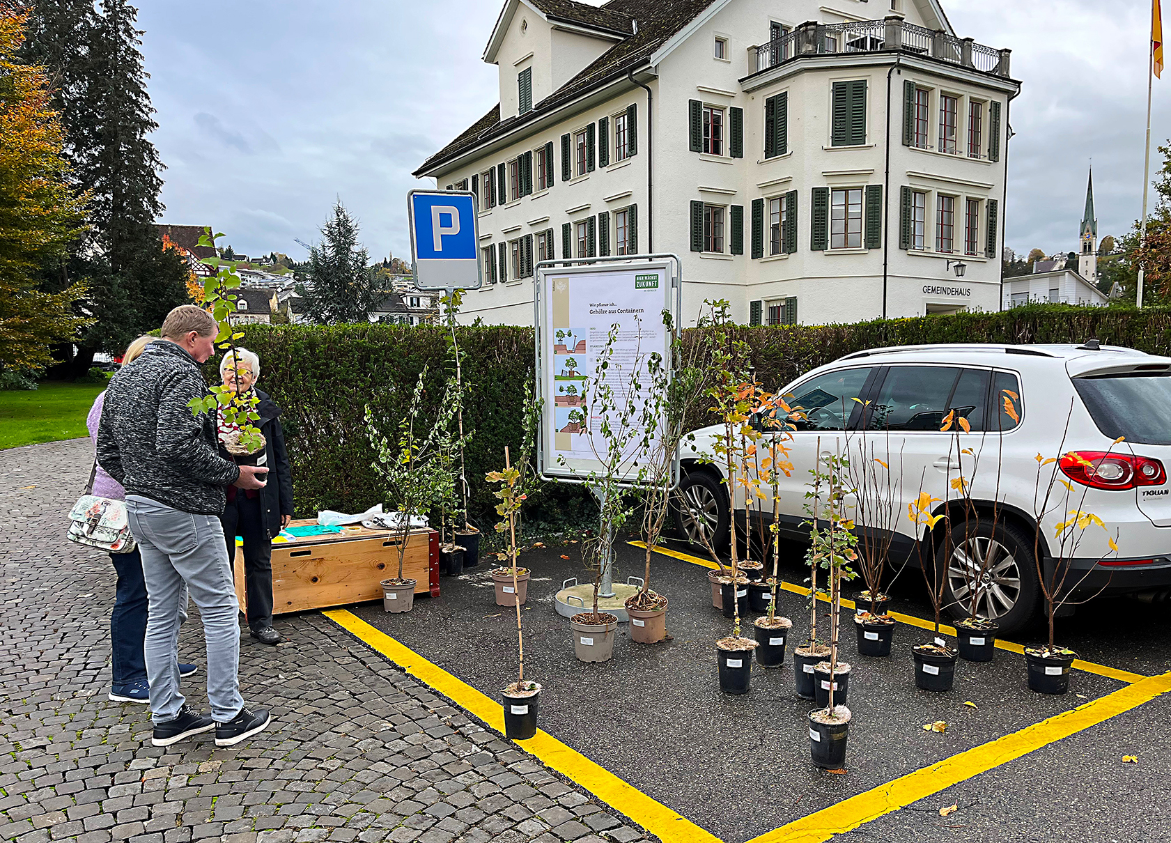 Am 25. Oktober war es dann soweit, die vorbestellten Bäume durften abgeholt werden. In Richterswil fand dies am Rande des Herbstmarktes auf dem Gemeindeparkplatz statt.