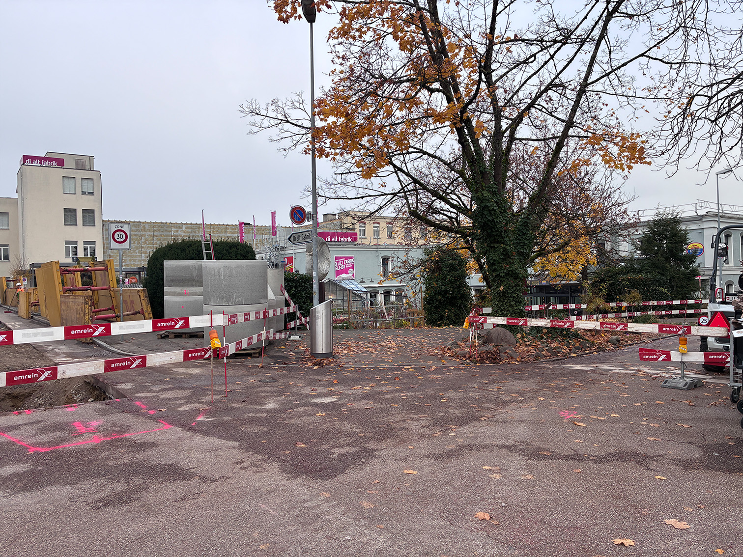 Die Tiefbauarbeiten rund um das Einkaufszentrum «Di alt Fabrik» umfassen mehrere Etappen und Bauabschnitte und dauern insgesamt gegen zwei Jahre, bis im Sommer 2027.