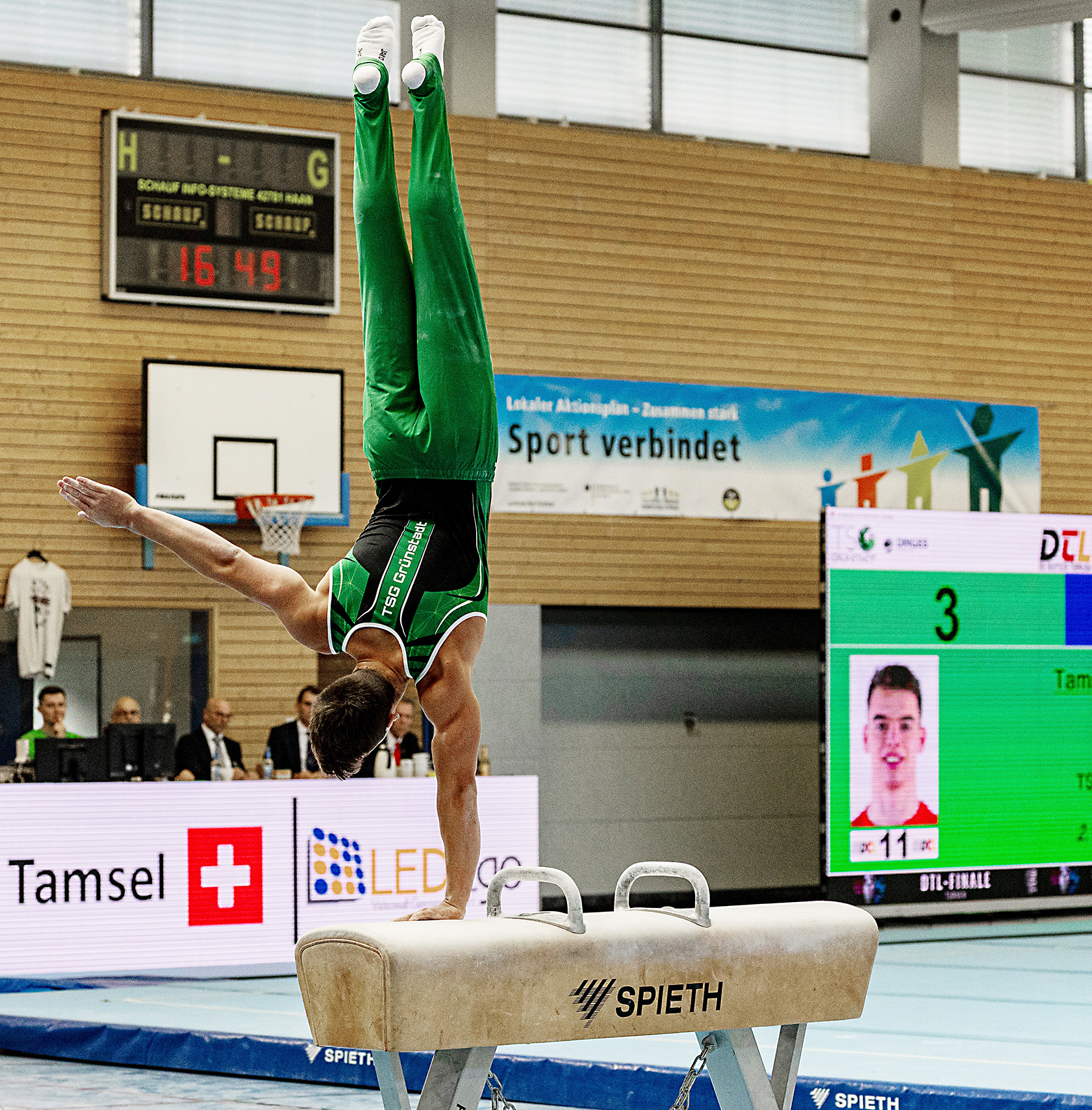 Tim Randegger und Dominic Tamsel verstärkten im September und Oktober gemeinsam das Turnteam Grünstadt (Rheinland-Pfalz) in der 2. Bundesliga Nord. Mit ihren Übungen konnten sie als «Ausländer» an vier Samstagen wichtige Punkte liefern. Momentan liegt Grünstadt auf dem zweiten Rang. Verläuft das letzte Duell erfolgreich, so dürfen die Grünstädter am 6. Dezember um den Aufstieg in die 1. Bundesliga turnen.