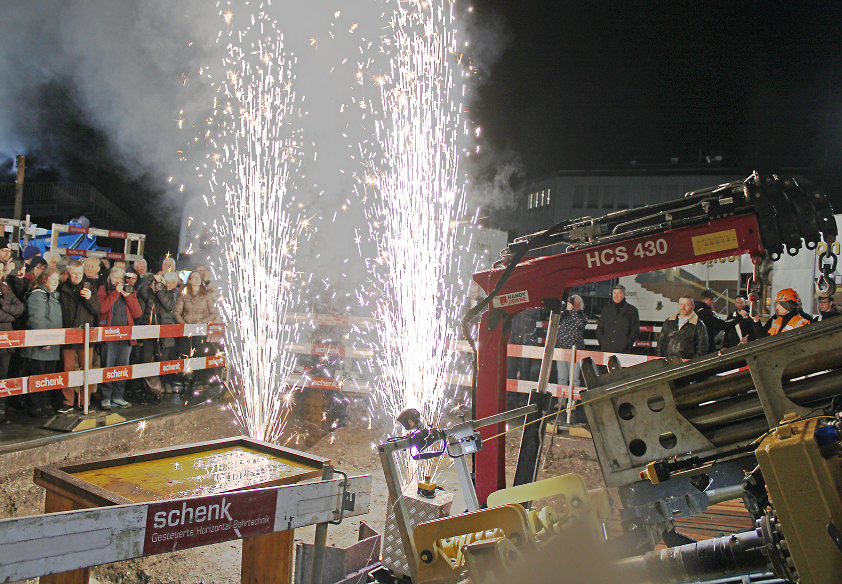 Stadtrat Jonas Erni setzte sich höchstpersönlich in die Kabine einer grossen Bohrmaschine und strahlte richtiggehend, als er diese in Betrieb nahm, um den Bohrstich vorzunehmen. Dieser wurde von den Wädenswiler Tambouren akustisch begleitet und der gleichzeitige Feuerzauber untermalte die grosse Bedeutung dieses Aktes.