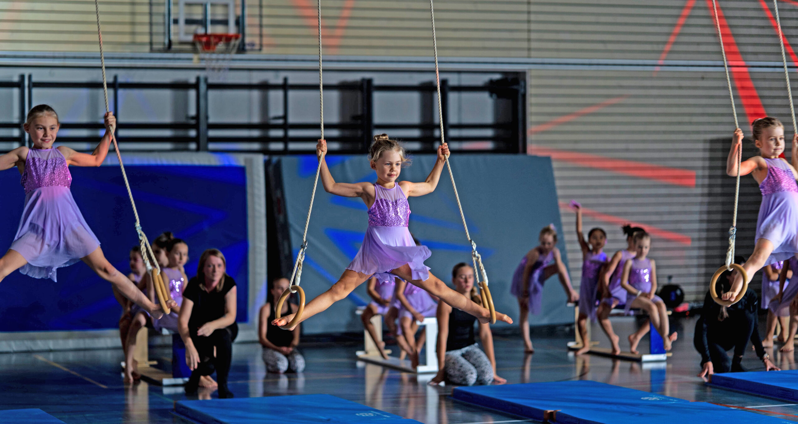 So entsteht ein vielseitiges Allround-Programm, das Kindern unterschiedlichster Fähigkeiten offensteht. Mitmachen können alle Mädchen ab der ersten Klasse, ohne Aufnahmetest. Entscheidend sind einzig die Freude am Turnen und die Motivation, die persönlichen Fähigkeiten in Kraft, Beweglichkeit und Koordination zu verbessern. Eines steht dabei allerdings fest: Am Spagat-Training führt kein Weg vorbei! Das Ziel des Leiterteams ist es, jedes Kind dort abzuholen, wo es steht. Das geht von einer einfachen Rolle vorwärts bis hin zu Flic Flac und Salto.