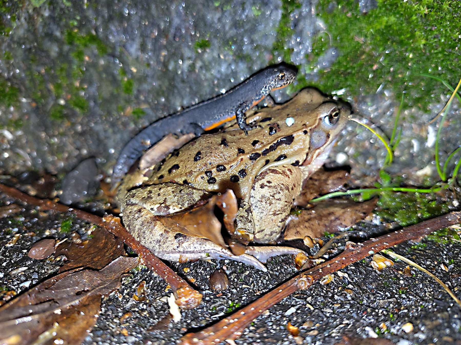 Wir finden auf dem Gebiet vorwiegend Erdkröten, Grasfrösche, Bergmolche und Feuersalamander.