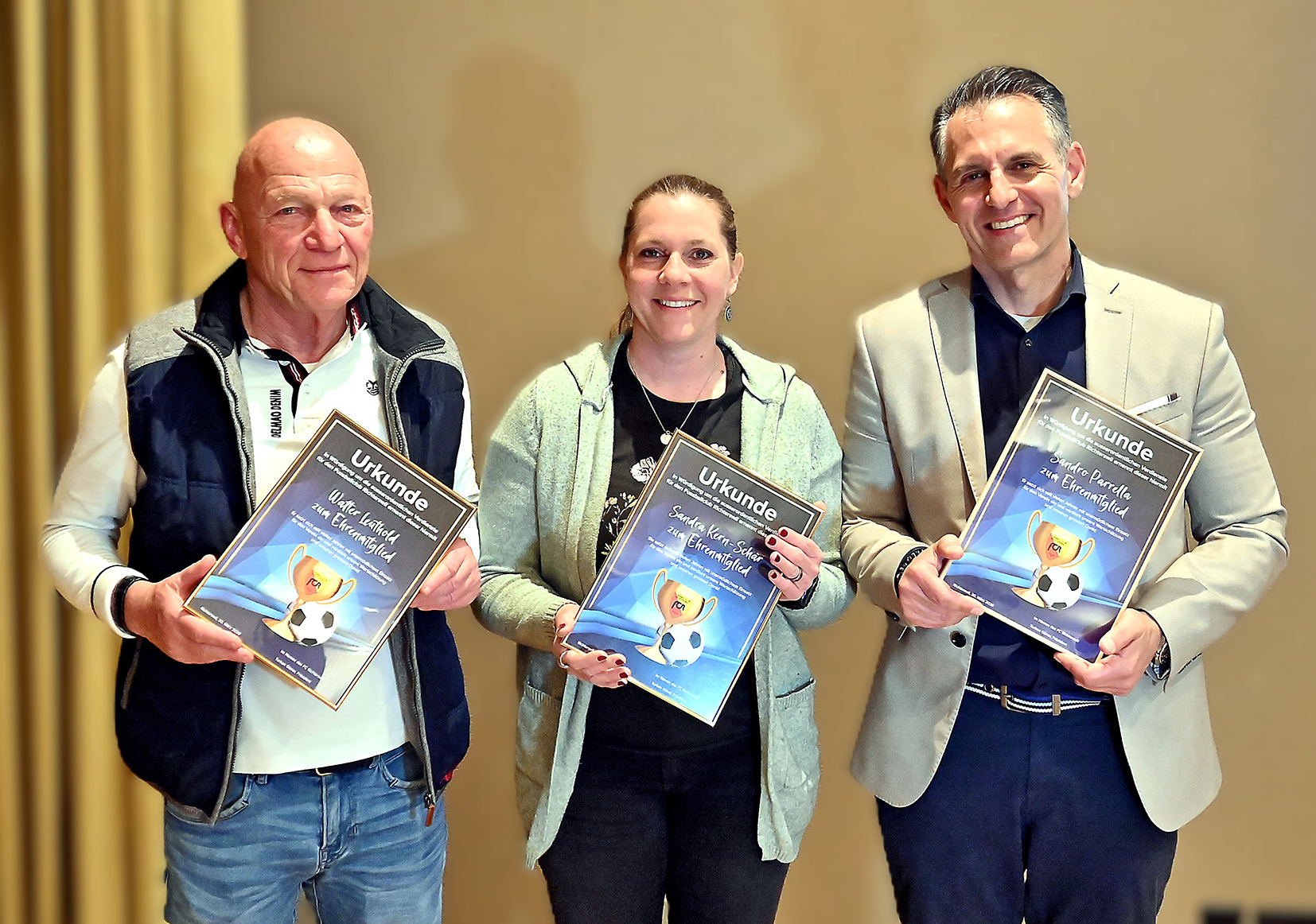 Verschiedene Ehrungen beanspruchten ihre gebührende Dauer. Der vom Amt zurücktretende Turhan Güner – in zwei Etappen während elf Jahren Vereinsvorsitzender – wurde per langanhaltender Akklamation der seltene Titel eines Ehrenpräsidenten zugesprochen. Weitere drei – während Jahren ebenso äusserst aktive – Personen konnten Ehrenmitglieds-Urkunden in Empfang nehmen. Sowohl Sandra Kern-Schär, Sandro Parrella und Walter Leuthold sen. leisteten für den Verein wortwörtlich unbezahlbare Hinter- wie Vordergrund-Arbeiten.