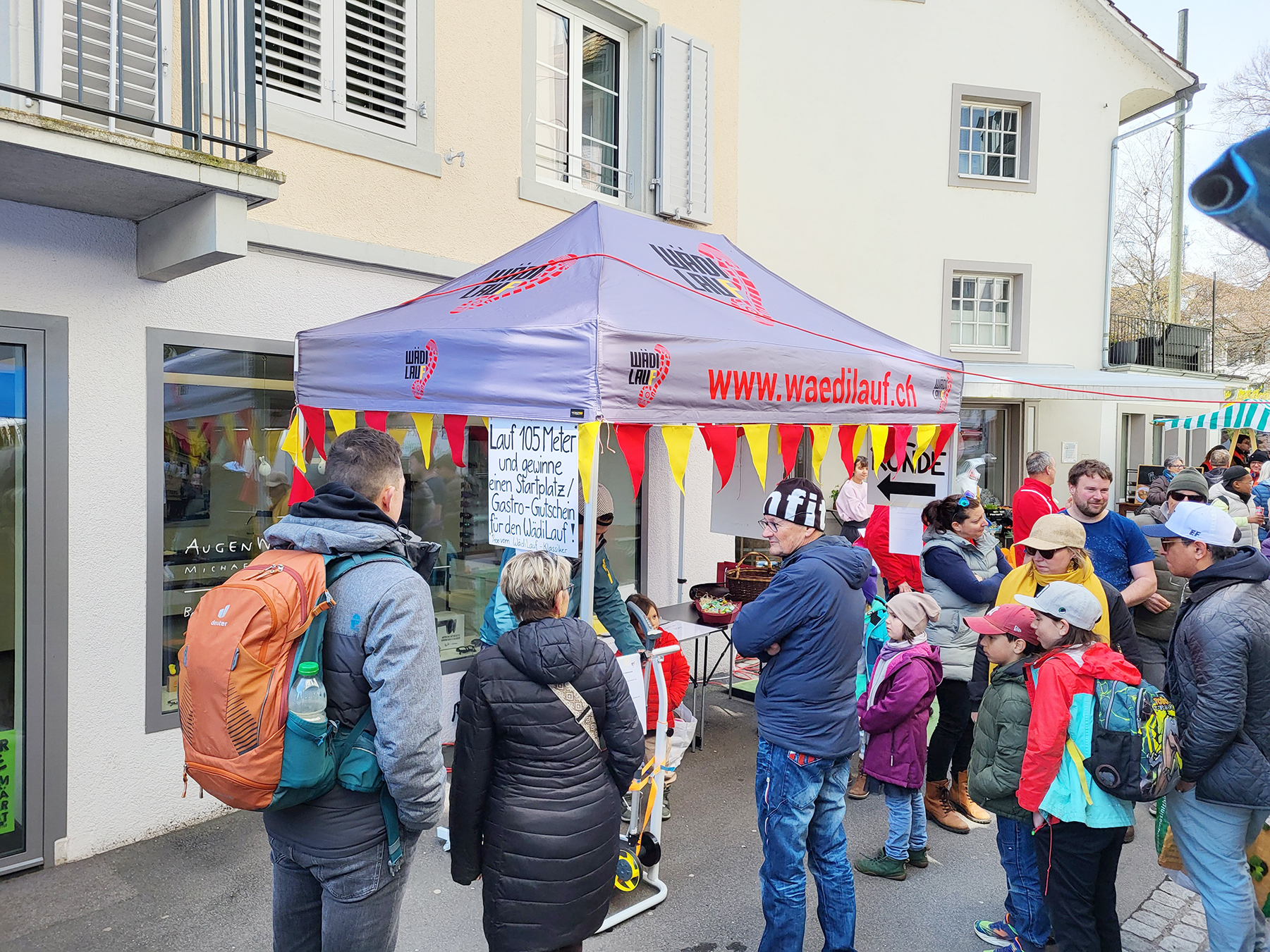 Auch wir waren wiederum am diesjährigen Frühlingsmarkt präsent. Wir durften viele interessante Gespräche führen und nochmals einige Anmeldungen für den Lauf entgegennehmen. Auf unserem Laufband konnten die Marktbesucher zeigen, wie gut sie ihre Schrittlänge im Griff haben. Ging es doch darum, möglichst genau 105 Meter zurückzulegen.