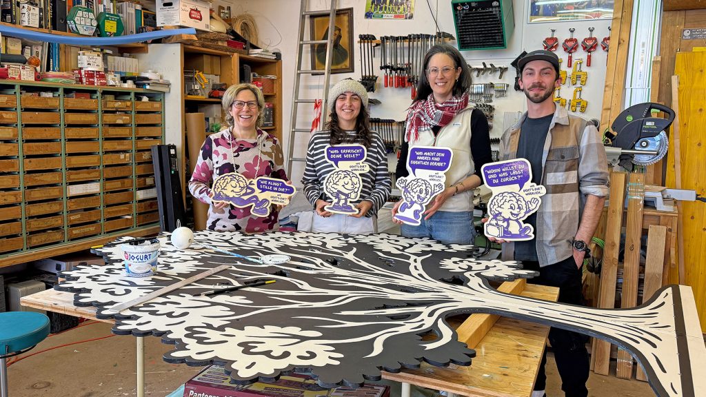 Plakatständer in Baumform entlocken den Passanten Emotionen und Werte, «Hirn-Männlein» mit Händen und Füssen stellen Fragen, über die nachgedacht werden sollen. Wer und…