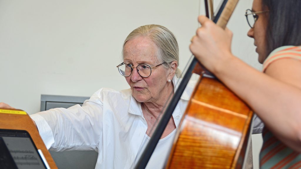 Zwei Seniorinnen und ein Senior und ihre Lehrpersonen im Gespräch mit dem Musikschulleiter zum Thema «Musikunterricht». Die heutige Generation der Seniorinnen und Senioren…